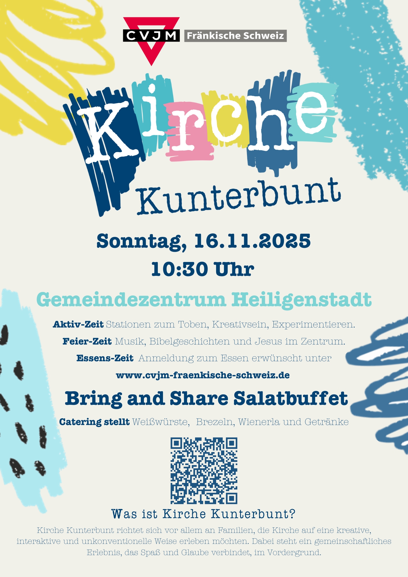 Offenheit: Kirche Kunterbunt ist offen für alle, unabhängig davon, ob sie einer Kirche angehören oder nicht. Sie versteht sich als niederschwelliges Angebot für Menschen, die mit traditionellen Kirchenstrukturen vielleicht weniger vertraut sind.
